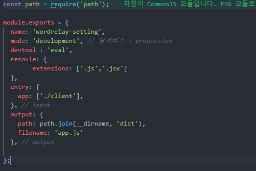 웹팩 설정 파일이다