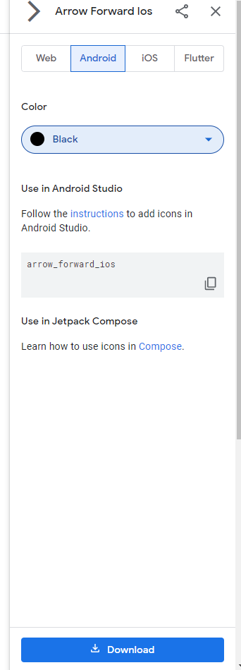 우리는 android 환경에서 아이콘을 사용할 것이므로, 안드로이드를 선택하고
