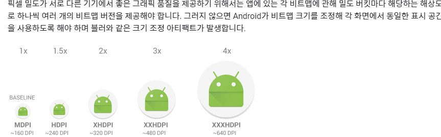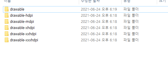drawble옆에 hdpi, mdpi, xhdpi 이런 표시들은 픽셀 밀도에 따른 아이콘을 제공해준 것이다.