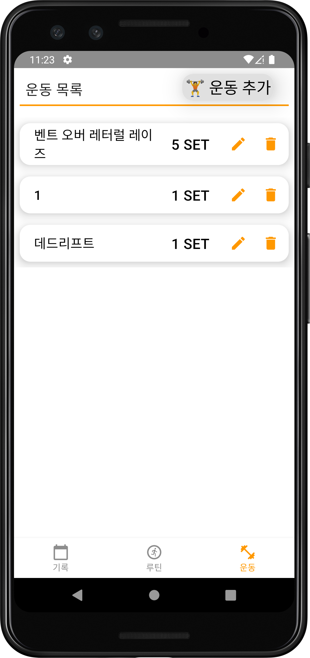 운동 목록을 확인할 수 있고, 추가할 수 있다.