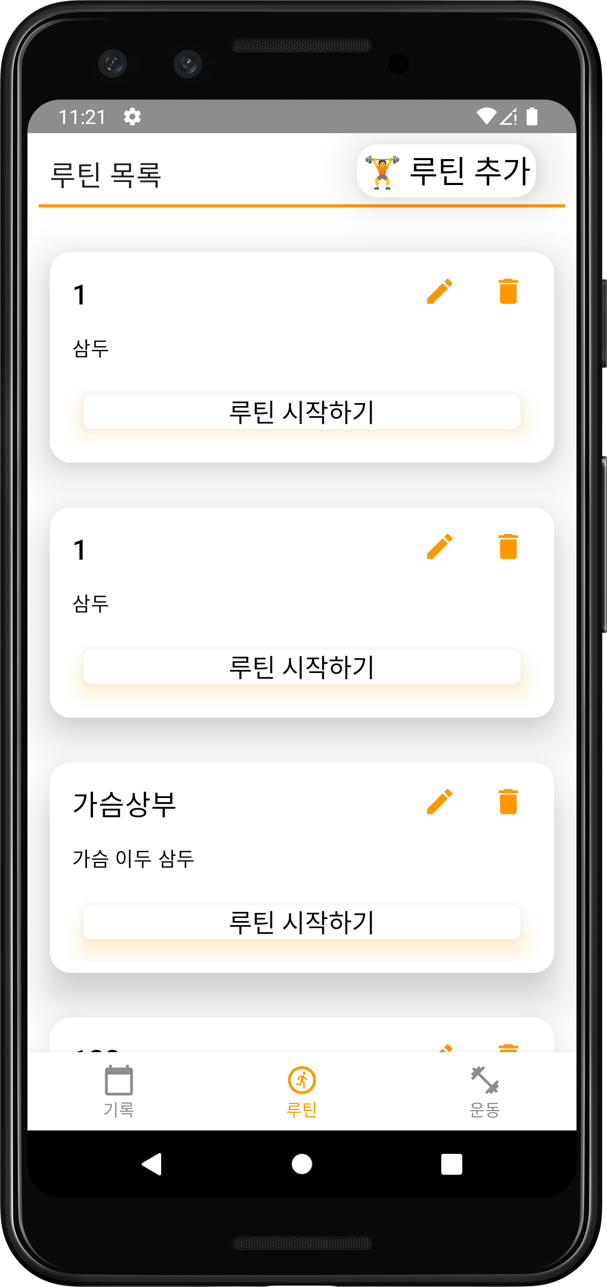 | 루틴 목록 | 루틴 진행 | 타이머 작동 |